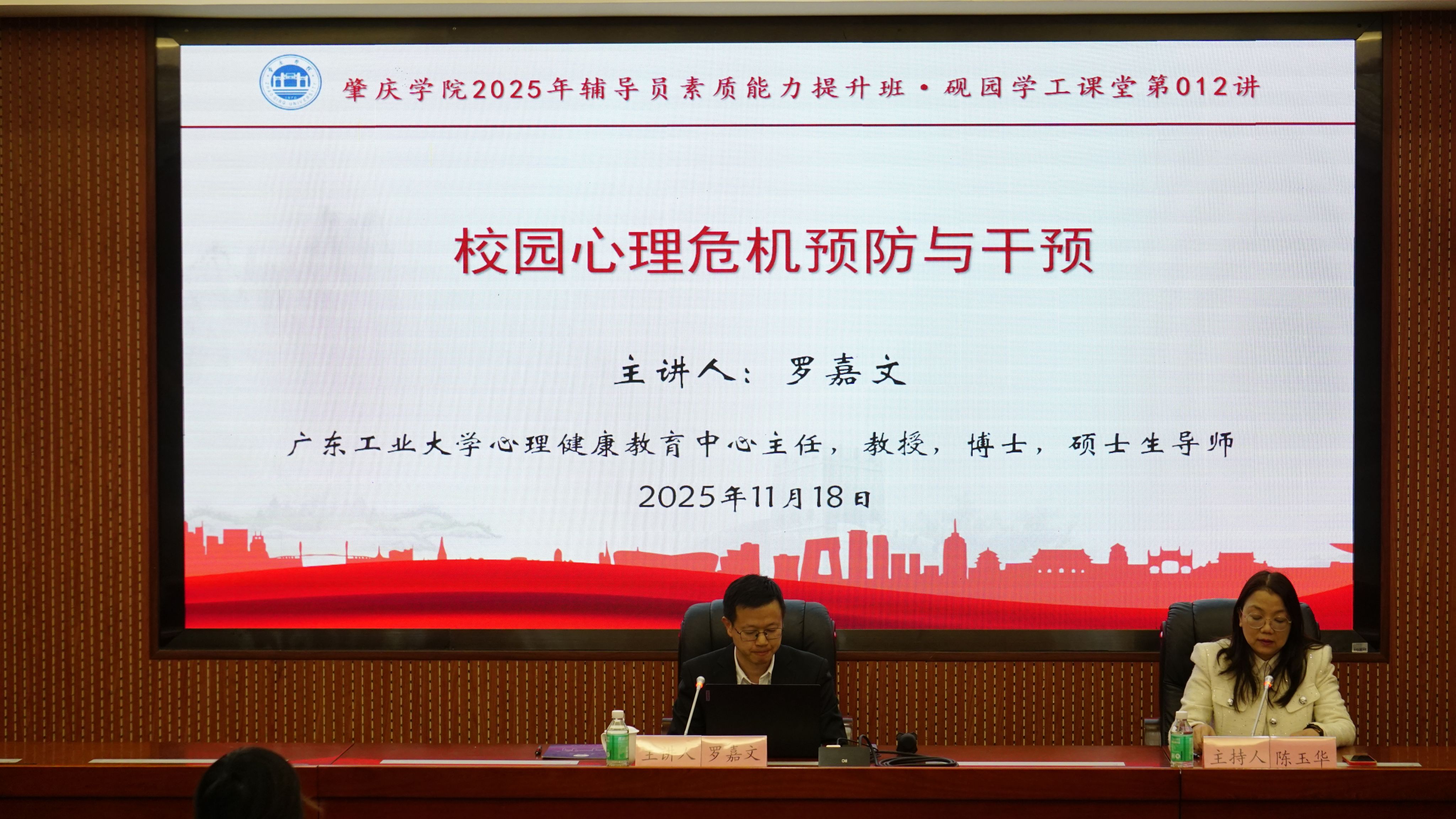 2025年11月18日上午,我校特邀广东工业大学心理健康教育中心主任罗嘉文教授开展“校园心理危机预防与干预”专题讲座。各学院副书记、辅导员、硕士生导师及心理中心专职教师参与学习,学工部部长陈玉华主持。