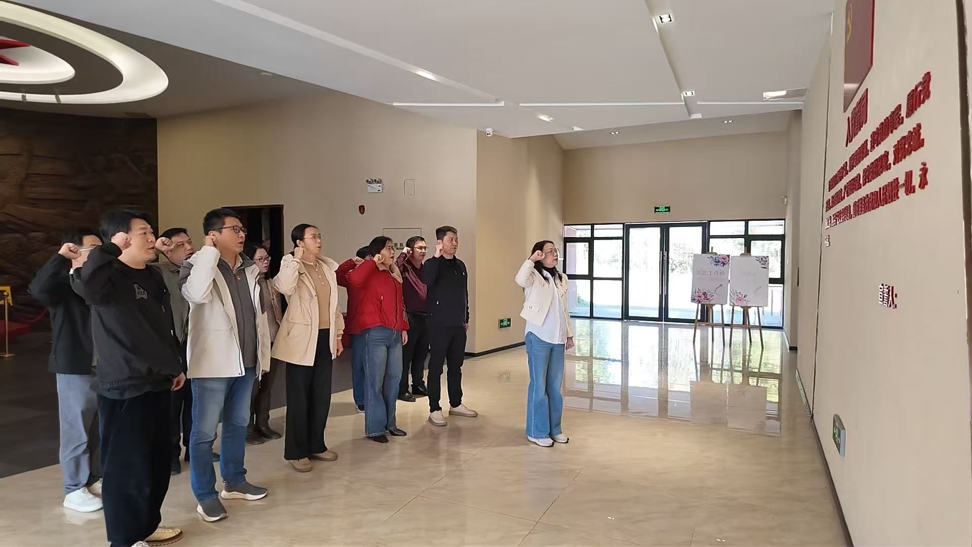 在水口战役纪念馆内,面对鲜艳的中国共产党党旗,全体党员庄严举起右拳,重温入党誓词。铮铮誓言,掷地有声,表达了同志们坚守信仰、牢记使命的坚定决心。