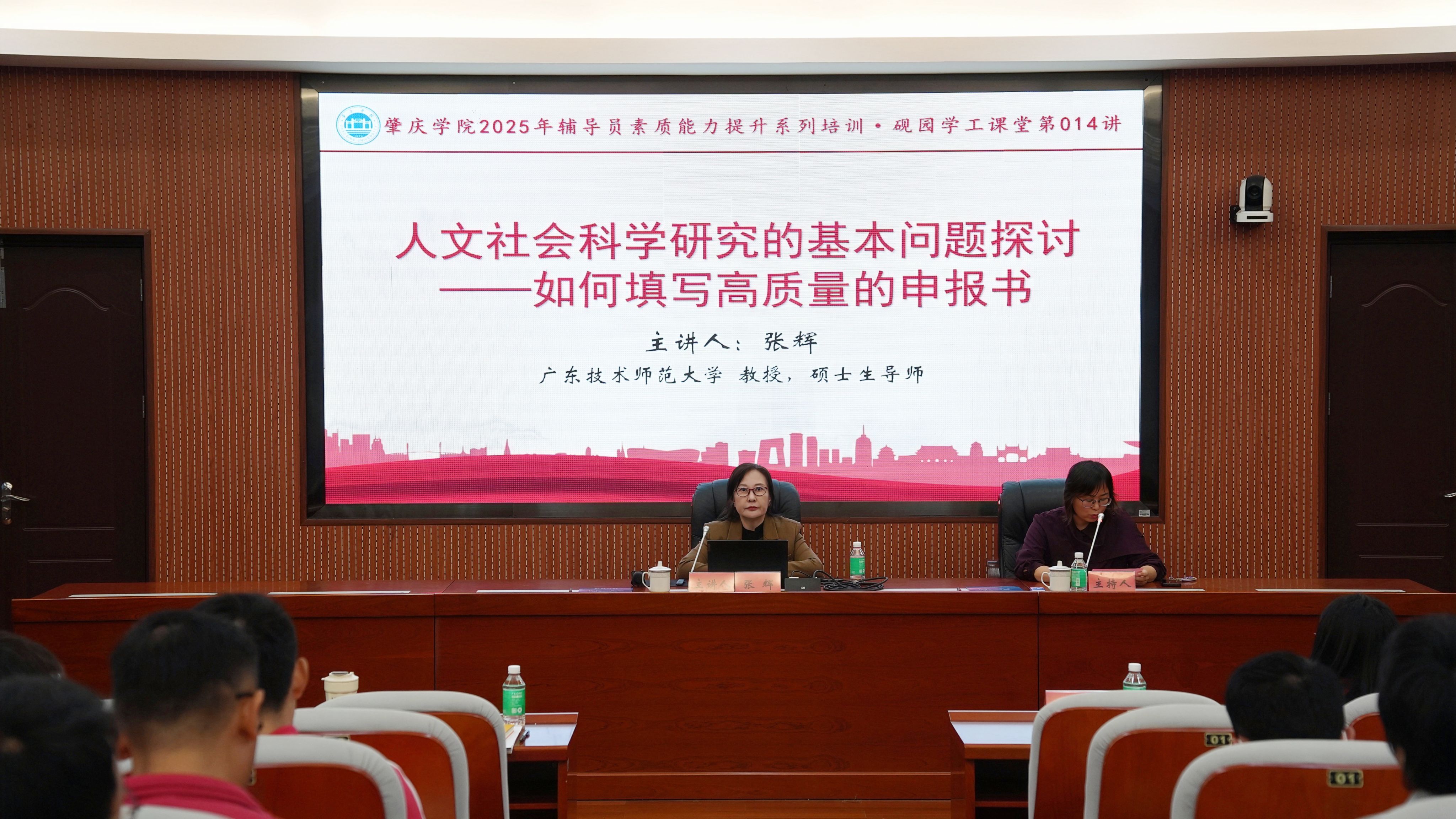 本网讯 12月9日,砚园学工课堂第14讲在行政楼第二会议室举行。本次课堂以“人文社会科学研究的基本问题探讨——如何填写高质量的申报书”为主题,特邀广东技术师范大学教授、硕士生导师张辉主讲,旨在为高校辅导员突破科研申报瓶颈提供系统指导。学生工作部相关科室成员及全体一线辅导员参加学习。
